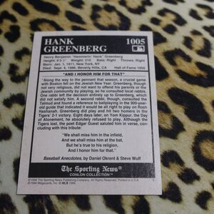 Hank Greenberg #1005 Baseball Card