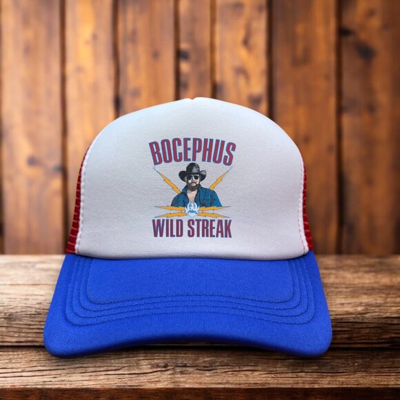Hank Williams Jr. Bocephus Wild Streak Mens Trucker Hat Blue Country Music Cap