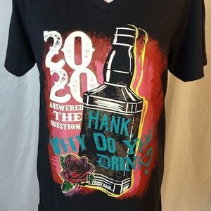 This black short sleeve Hank Why Do You Drink v-neck tee is a size Medium with a pit to pit measuring 20-1/2". 60% cotton 40% polyester and machine washable. Pre-owned and in excellent condition. All offers welcome.