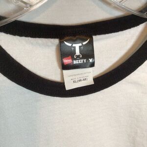 White Ringer 100% Cotton T Shirt Hanes Beefy Extra Large XL 22" Pit to Pit 28" Length