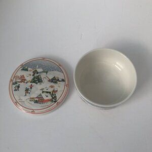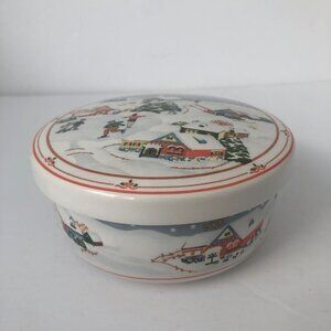 Hankook Trinket Box Winter Christmas Village Holiday Snow 3.5"