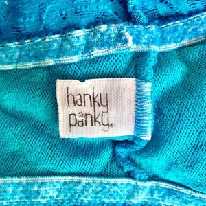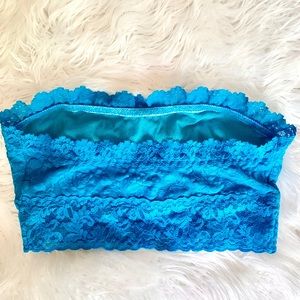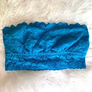 Hanky Panky Lace Bandeau Hanky Panky Signature Lace Lined Bandeau Excellent Condition Size Extra Small Color Blue Elastic banding at top & bottom hems Mesh lining Lined bodice Bandeau bralette Scalloped lace trim Hanky Panky signature lace Lingerie Ideal for layering Hand wash cold, dry flat Neon color brighter in person Body: 100% Nylon Trim: 90% Nylon, 10% Spandex Smoke Free Home Inspo Tags: Anthropologie Boho Zara Revolve Chic Hipster Concert Modern Lace Tulle Silk Floral Sheer Sultry Fall