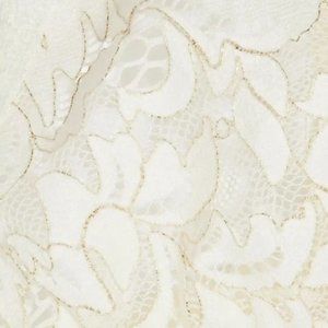 A smooth satin bow adds a flirty sweet touch to this sexy sheer lace bralette. In an ivory lace with rich elegant gold metallic detail . Soft triangle cups. Adjustable spaghetti straps. Elastic underband. Clasp fastening in front. Satin bow tie in front. Material of body 84% polyamide 13% spandex 3% lurex. Lace is 87% nylon 13% spandex. Hand wash.