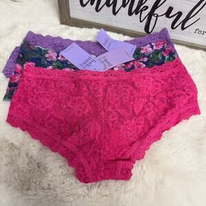 Hanky Panky Set of 3 Lace Boyshort Underwear Panties Pink Floral Size Medium NWT