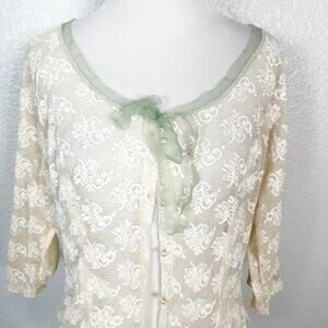 Hanky Panky Womens Sheer Lace Button Down Tie Top in Cream Size Large