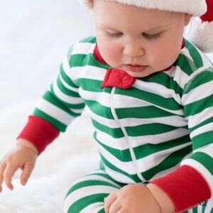 Hanna Anderson Baby Striped Zip Sleeper Tree Green/White/Red
