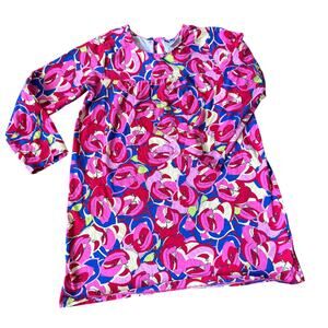 Hanna Anderson Dress Girls 10 Pink Red Floral Long Sleeve Midi Cotton Pullover