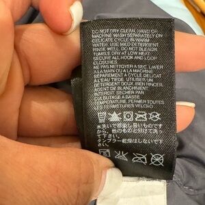 Warm kids coat with zipper and button features. Some signs of wear on Jacket (pen mark) and name written on the inside. Also some signs of wear near end of arms.
