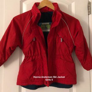 Hanna Anderson Fleece-lined Ski Jacket w/ Stowaway Hood Cinch Waist Sz 5
