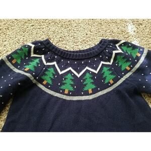 Hanna Anderson Girl Navy Blue With Christmas Trees Knit Dress Size Girl 10 140cm