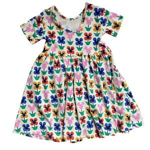 Hanna Anderson Mickey Mouse Dress 100cm/4 Round Neck Short Sleeve Cotton