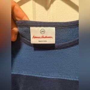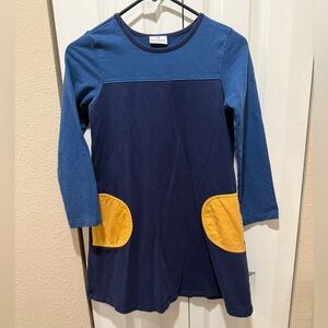 Hanna Anderson Dress Sweatshirt Terry Cotton Navy Yeloow Pockets, size 10 years