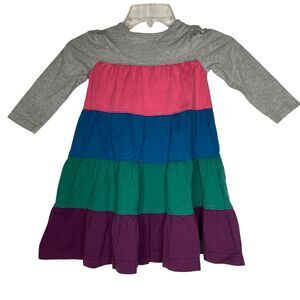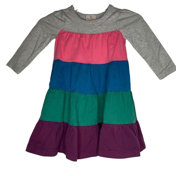 Hanna Andersson 100% Cotton Colorblock Ruffle Knit Dress sz 100 US 4