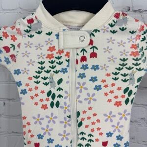 Hanna Andersson pieces size 6-12m. Bunny/floral print one piece pj set. Pink onesie with embroidered flowers. Cream onesie with embroidered rainbow. All in great condition. Smoke free home.