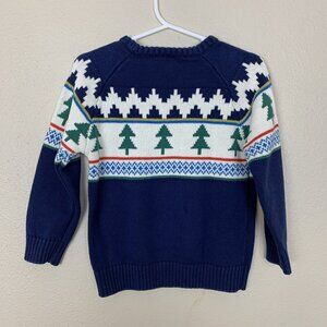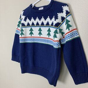 Hanna Andersson 90 3T Holiday Sweater Navy Trees Christmas Pullover Fair Isle