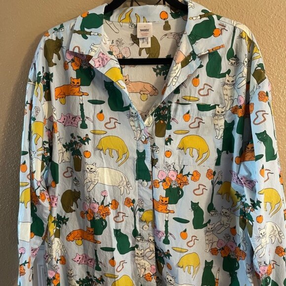 Hanna Andersson Baggu Cat Table Talk Women’s Long Sleeved Button Up Shirt S