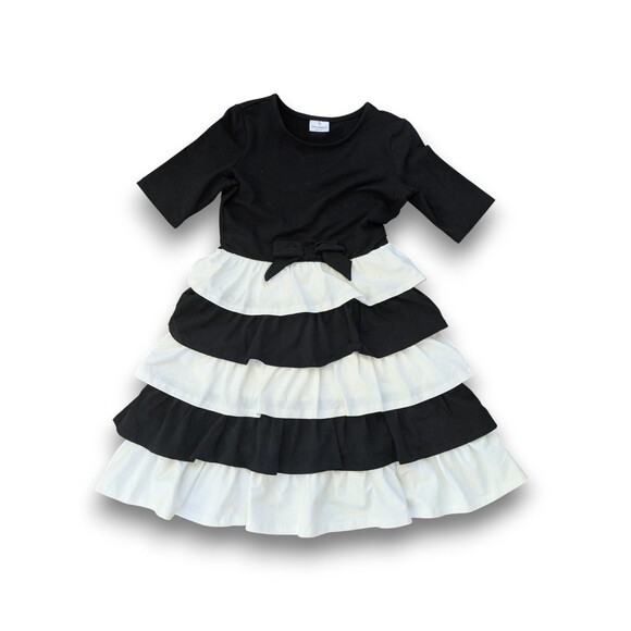 Hanna Andersson Black & White Tiered Ruffle Dress Bow Girls 160 US 14-16