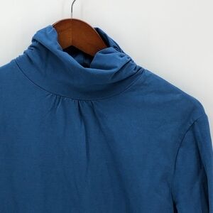 Hanna Andersson Blue Long Sleeve Turtleneck—cotton spandex blend for a bit of stretch. Gathered detail at neck. Gently used condition—please see photos. Size Large.