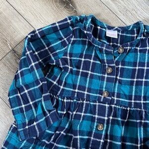 Hanna Andersson Blue Plaid Flannel Button Down Dress