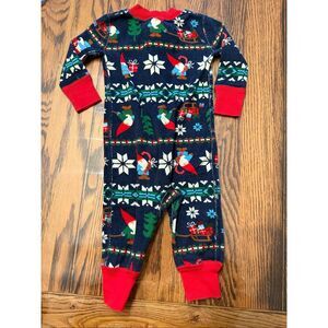 Hanna Andersson Blue Red Gnomes Print Christmas Sleeper Footie Size 3-6 Months