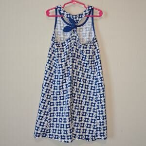 Hanna Andersson Blue & White Geometric Floral Print Racer Back Dress Size 130/8