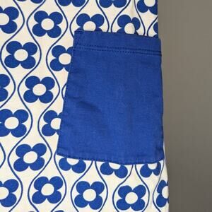 Adorable and comfy Hanna Andersson dress with a retro-inspired geometric floral print in blue and white. Perfect for summer days or casual outings.