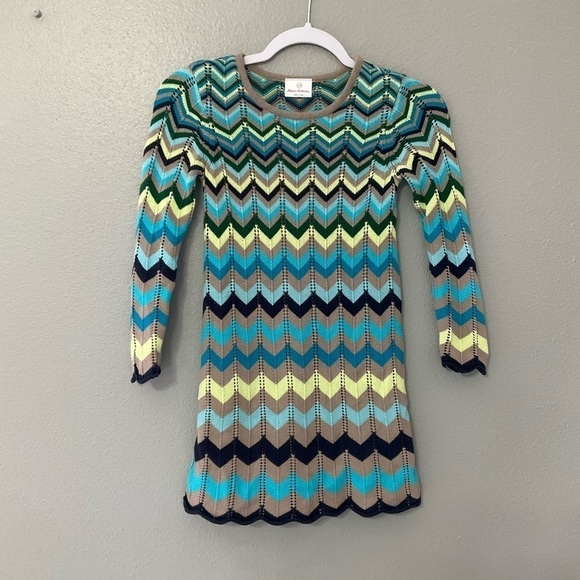 Adorable Hanna Andersson size 90 Toddler 3T knit chevron dress. A beautiful mix of colors on this timeless piece. I see no issues. Very good clean condition. Fully lined