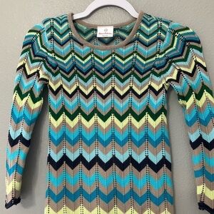 Hanna Andersson Blue Yellow Chevron Knit Long Sleeve Dress 120 (us size 6-7)