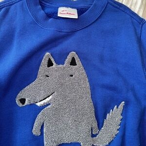 Hanna Andersson Boys Size 12 Royal Blue Crewneck Wolf Appliqué Print Sweatshirt