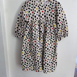 Only worn once or twice. EUC. Flannel spotted dress multicolor with cream background. Great for fall and winter. Puff 3/4 length sleeves.