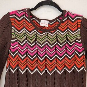 Hanna Andersson Brown Pink Chevron Knit Sweater Dress Fall Winter Girls 12 150cm