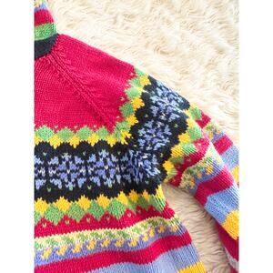 I love this one!! Cute colors and fair isle design plus the tassels along the hem and on the hood! Gives it a little bit of an elf vibe.