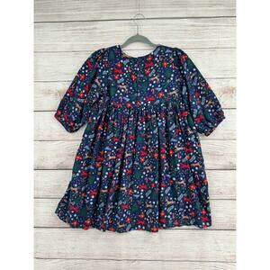 Hanna Andersson Christmas Print Dress Youth Girls 12 Blue Red Green