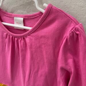 Hanna Andersson long sleeve dress size 130 (8). Colorblock with pink, golden yellow, teal, and blue with great twirl. Very good condition.