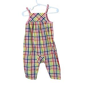 Hanna Andersson Colorful Gingham Jumpsuit With Flower Applique Size 12-18 months