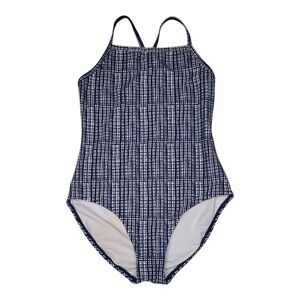 Hanna Andersson Cross Back 1 Piece Swimsuit Navy|White Girls Size 8