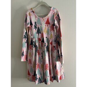 Hanna Andersson Cute "SOFT SKATER" Pocket Dress Trees Holiday Christmas size 6-7