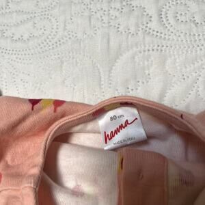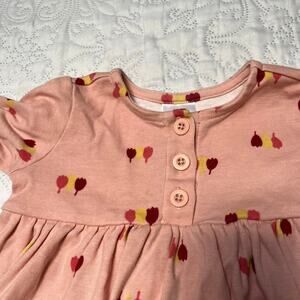 Hanna Andersson printed day play dress in ballet pink. Long sleeve floral print dress with front button details. Good condition, one light spot on top. Size 80 / 24 months.