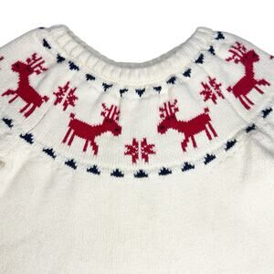 Cream crewneck sweater dress with a red deer and fair isle print. Dress is in excellent condition and shows no signs of wear. Size: 100cm (4).