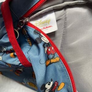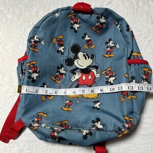 Hanna Andersson Disney Collection Mickey Mouse backpack. Blue Mickey print with patch detail. Fair condition for various light spots and some wear. Looks to be preschool size, see measurements.