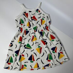 Hanna Andersson Dress Girls 120 6-7 White Sail Boat Print Pockets Terry Sundress
