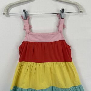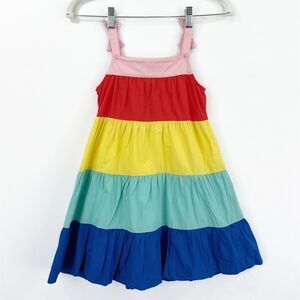 Hanna Andersson Dress Girls 5/110 cm Rainbow Stripe Sundress Tank Long Lined Bow