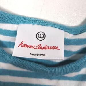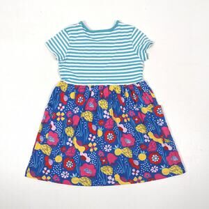 Hanna Andersson classic casual little short sleeve dress in a blue floral and stripe mix. Size 130, which is US size 8.