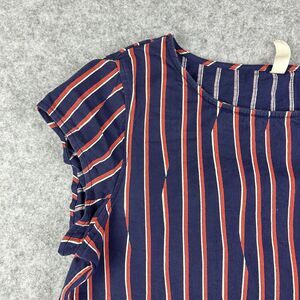 Hanna Andersson Dress Womens L Blue Stripe Shift Stretch Cap Sleeves Pockets