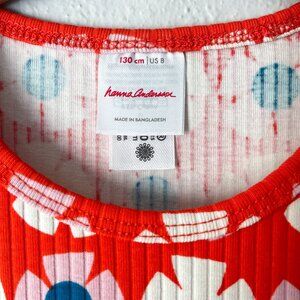 Hanna Andersson Drop Needle Rib Dress Far Out Flowers on Orange Spice 8 (130)