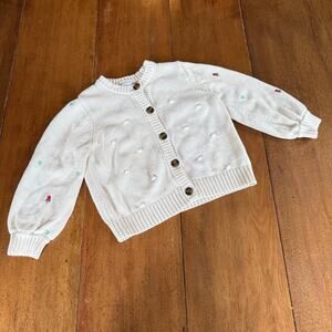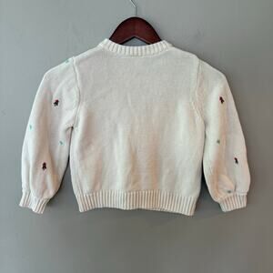 Hanna Andersson Ecru Cream Knit Cardigan 6/7 Floral Embroidered Bobble Texture