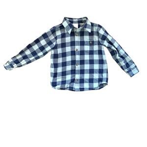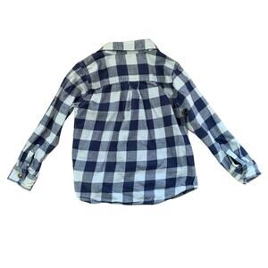 Blue and navy checkered or buffalo plaid long sleeve button up shirt