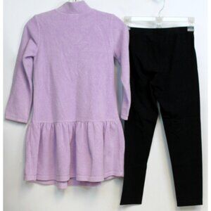 Hanna Andersson Fleece Dress Black Leggings 2pc sz 130 8 Mock Turtleneck Flower