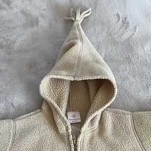 Hanna Andersson Fleece Onesie with Hood in size 70 6-12 months Soft Neutral