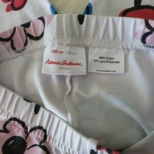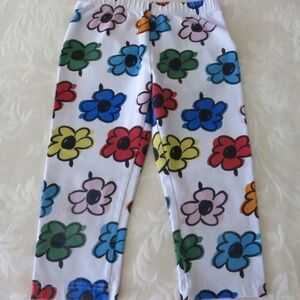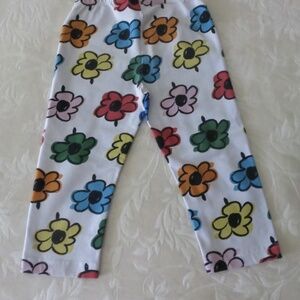 Cute pair of capris from Hanna Andersson are in very good used condition. They have a bright floral design on white background, size 6-7, 90% cotton, 10% spandex, machine wash and dry per label.